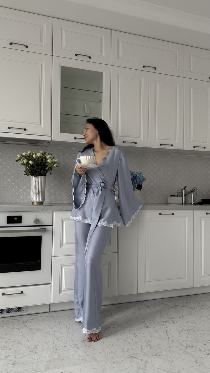 - Уютная леди: выберите легкую хлопковую или льняную пижаму пастельного оттенка. Дополните образ мягким кардиганом и нежным ароматом духов. Простой прическе можно придать стильный вид с помощью аккуратного хвоста или ободка.