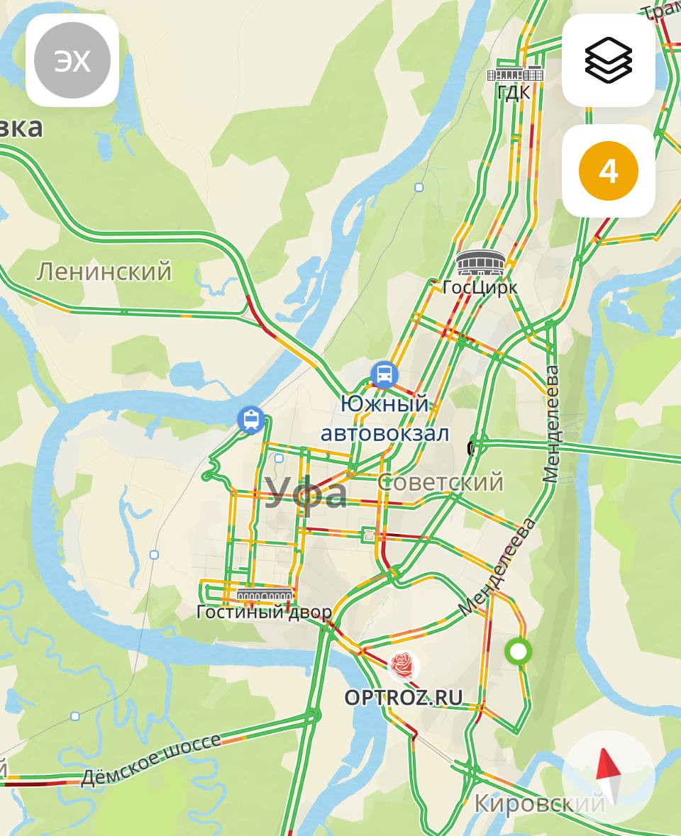 Пробки в Уфе - 4 балла. Заторы у Госцирка, Гостиного двора и южного автовокзала