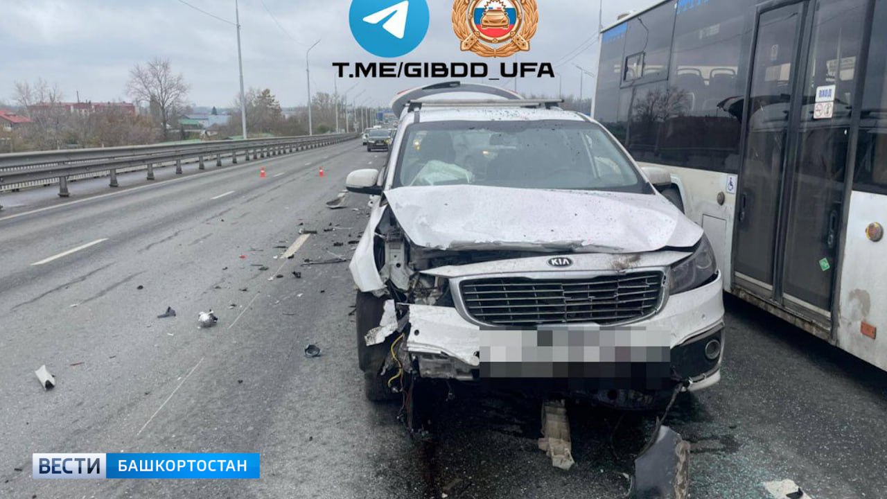 По предварительным данным Госавтоинспекции Уфы, 53-летний водитель Kia Carnival, двигаясь по Бельскому мосту со стороны Демского шоссе в сторону улицы Заки Валиди, столкнулся с остановившимся из-за поломки автомобилем Renault Laguna. В результате удара также пострадала Skoda. Двое несовершеннолетних пассажиров Renault обратились за медицинской помощью, после оказания помощи были отпущены. По факту ДТП начато административное расследование.