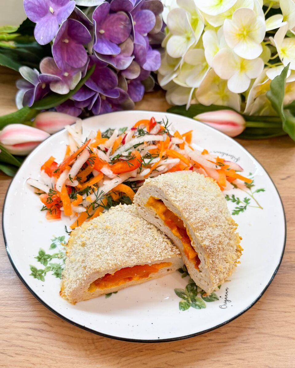 Подавайте с ярким салатом из свежих овощей, который дополнит вкус блюда и придаст ему легкость. Эти кармашки станут отличным вариантом для ужина или обеда. Приятного вам аппетита!