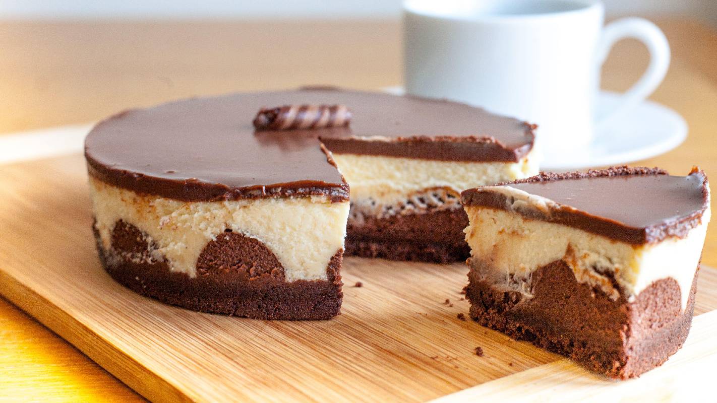 Достаньте корж из печенья и начинайте выкладывать на него по очереди шоколадный и белый крем. Потрясите миску, чтобы он равномерно распределился по коржу и с помощью зубочистки нанесите рисунок. Оставьте до полного застывания. Затем полейте растопленным шоколадом и уберите в холодильник на 30 минут, советует кондитер Андреи? Бунбич на своем канале «Десертный Бунбич».