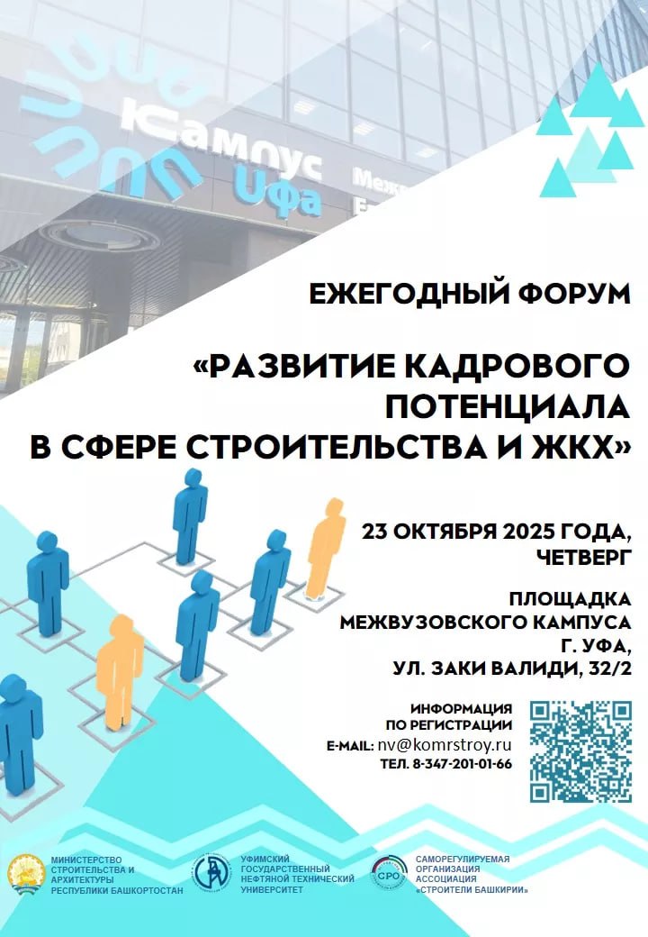 23 октября в Межвузовском студенческом кампусе Уфы состоится ежегодный форум «Развитие кадрового потенциала в сфере строительства и ЖКХ». Мероприятие объединит представителей органов власти, бизнеса и образовательных организаций Башкортостана и Челябинской области.