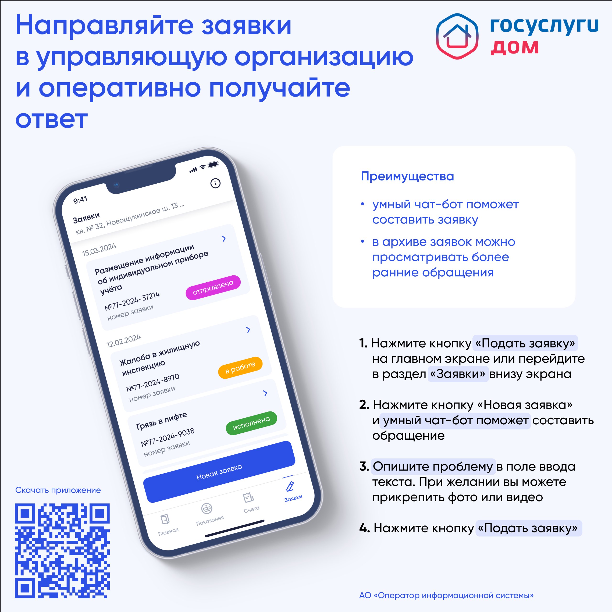 Если возникнут вопросы или проблемы с работой приложения, пишите в службу поддержки: mpdom@dom.gosuslugi.ru