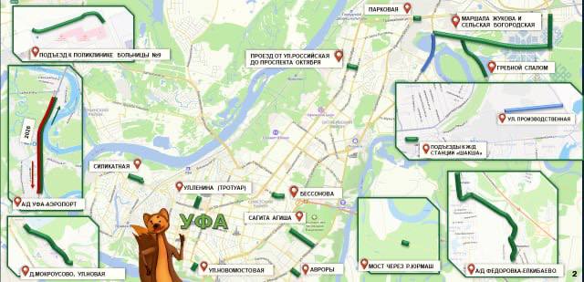 Пробки в Уфе - 3 баллаЦентр и мосты перегружены, особенно в районе Гостиного двора.На выездах из города движение плотное, но трассы к Авдону и Зубово относительно свободны.