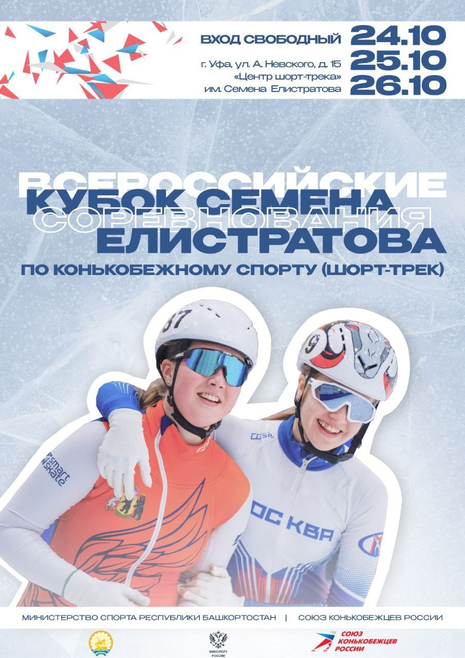 В Уфе стартует второй этап Кубка России по шорт-треку и всероссийские соревнования «Кубок Семёна Елистратова» среди юниоров и юниорок 18–19 лет