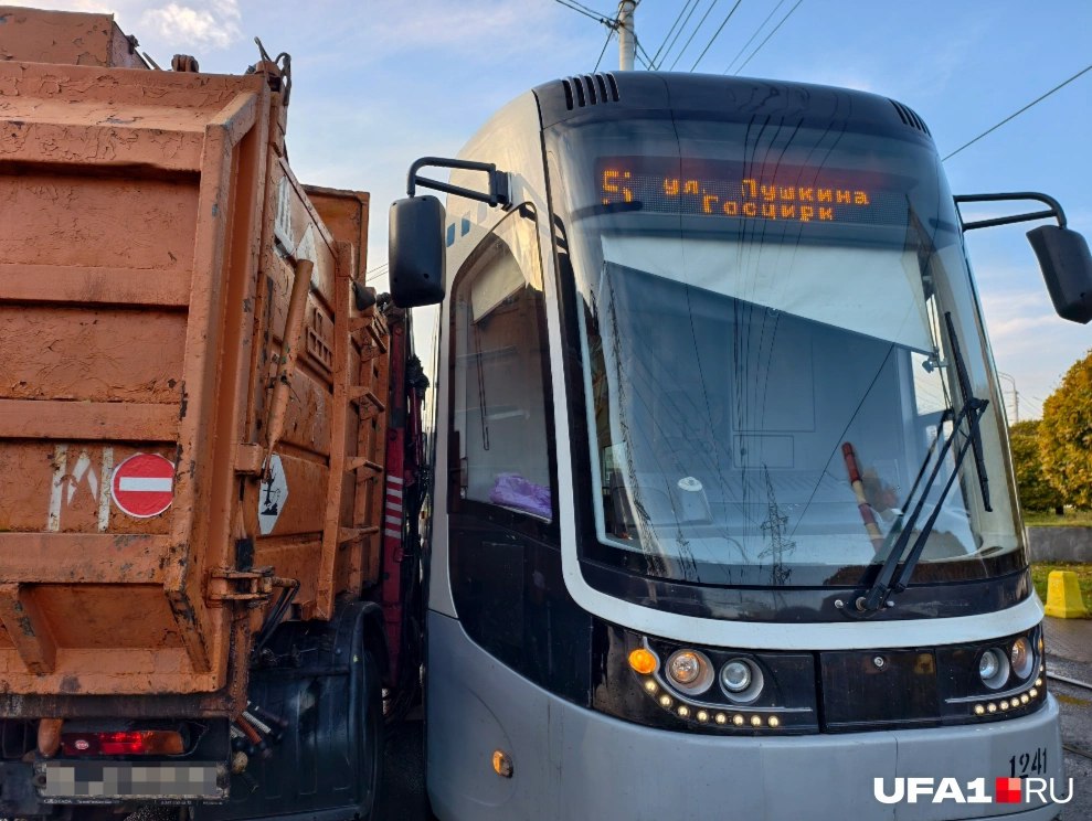 23 октября в Уфе на улице 50-летия Октября у «Тинькофф Холла» столкнулись мусоровоз и трамвай Pesa Fokstrot, которые ехали навстречу друг другу.