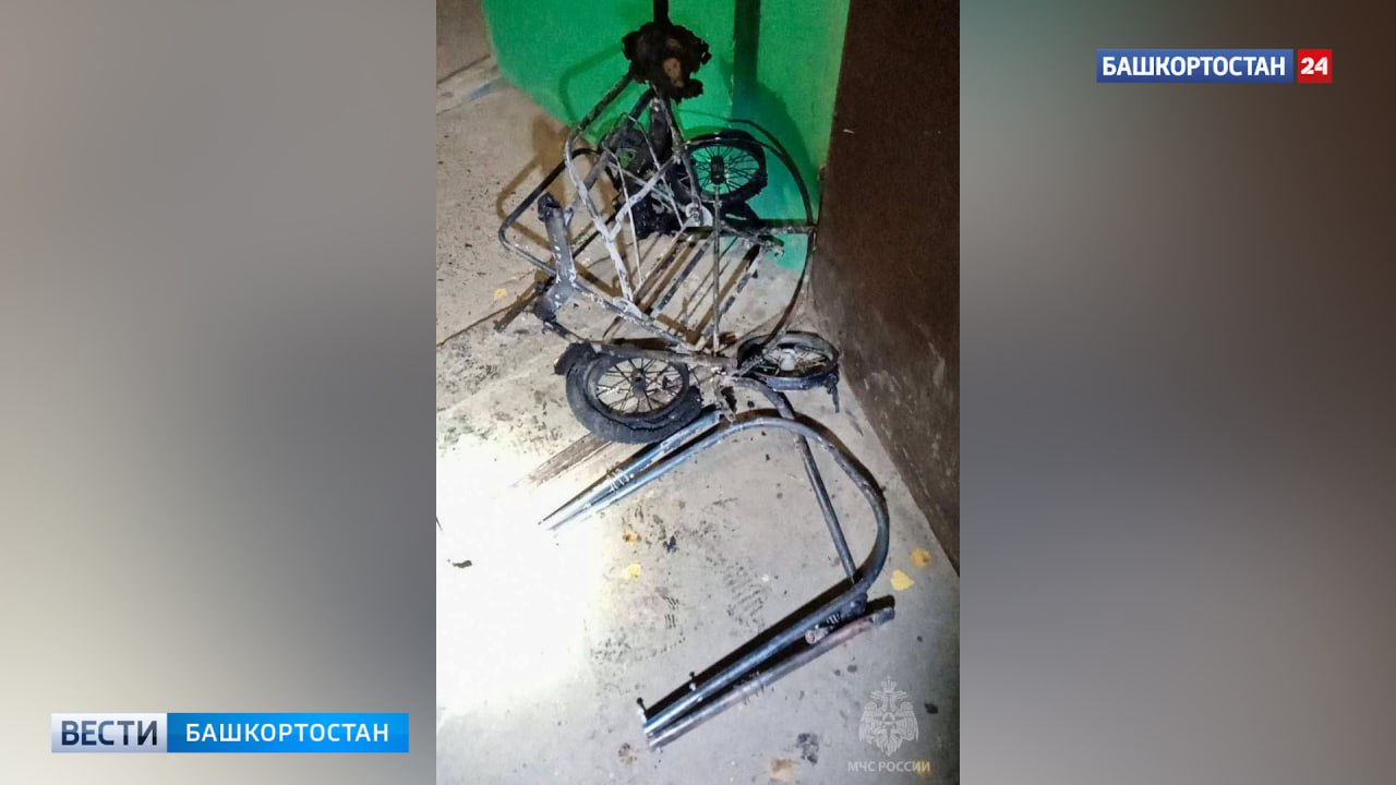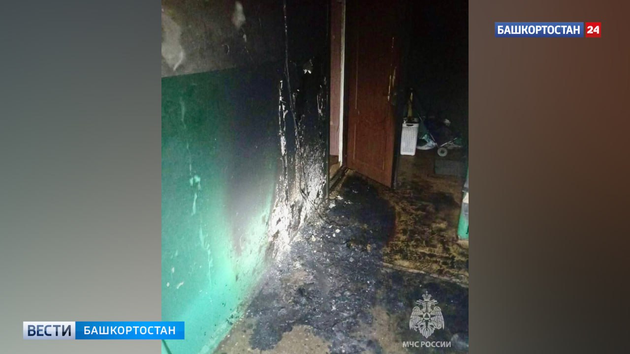 По данным пресс-службы МЧС России по РБ, дети госпитализированы с отравлением продуктами горения. В результате пожара также повреждены детская коляска, стена и потолок. Пожар потушен до прибытия пожарных, причина и обстоятельства устанавливаются.