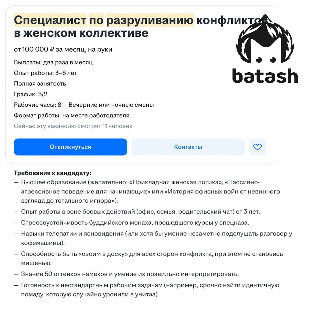 Нашли в Уфе работу для реально бесстрашных — мирить сотрудниц в женском коллективе за 100к в месяц.