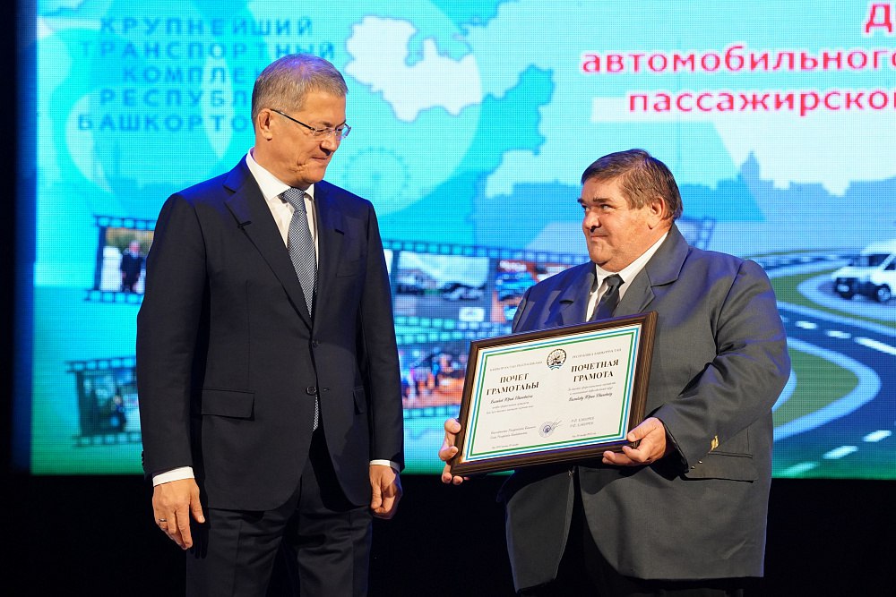 24 октября в Уфе состоялось торжественное мероприятие, посвящённое Дню работника автомобильного и городского пассажирского транспорта. Глава Башкортостана Радий Хабиров поздравил работников и ветеранов «Башавтотранса» с профессиональным праздником и вручил государственные награды.