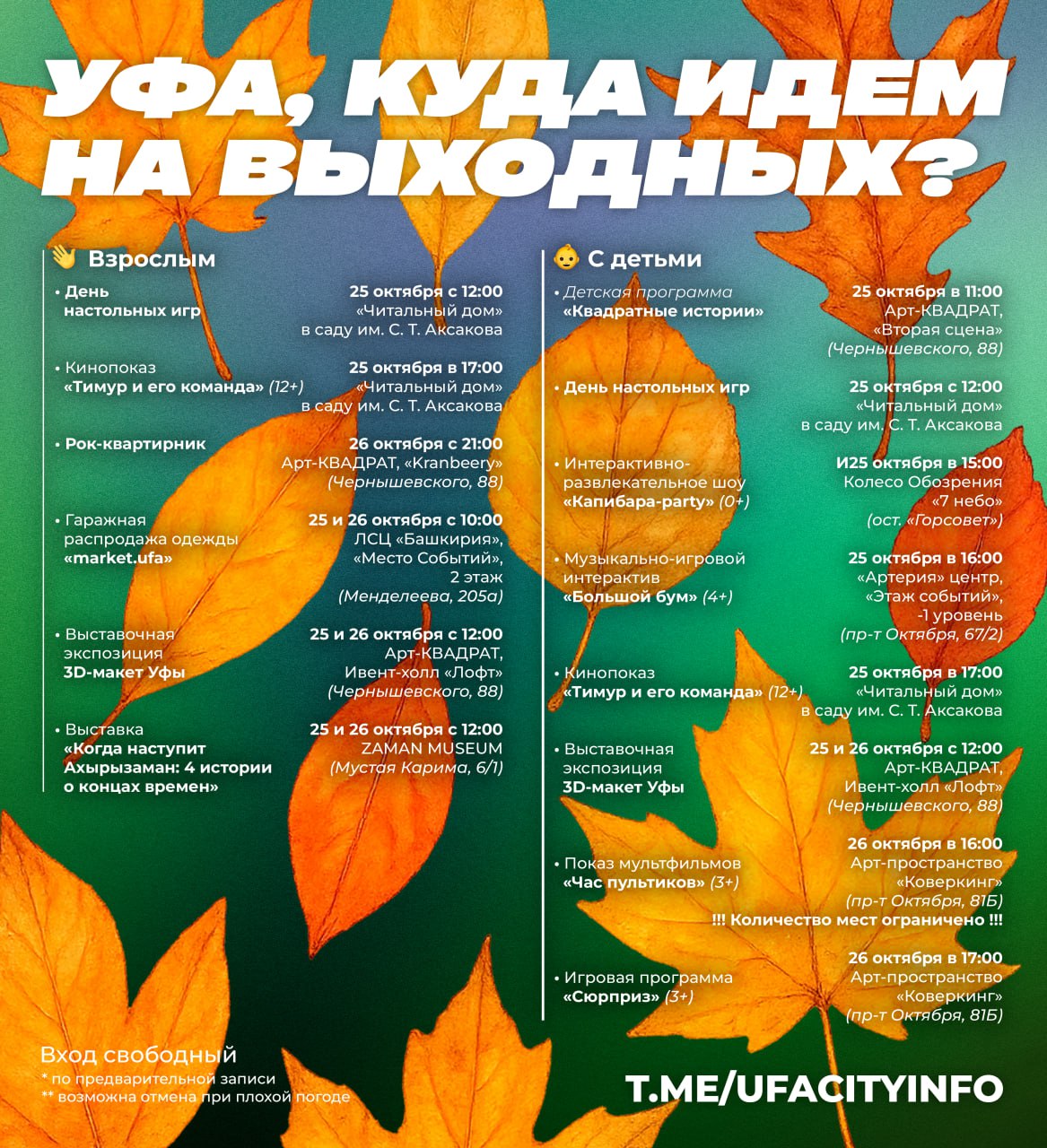 Если афиша стала для вас полезной - поставьте нам . Вам не сложно - а нам приятно и дальше собирать для вас бесплатные мероприятия на выходные