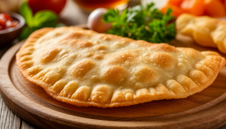 Когда тесто отдохнет, поделите его на 12 частей и раскатайте в тонкие лепешки. Расположите начинку на одной половине лепешки, накройте другой половиной и тщательно защипите края.
