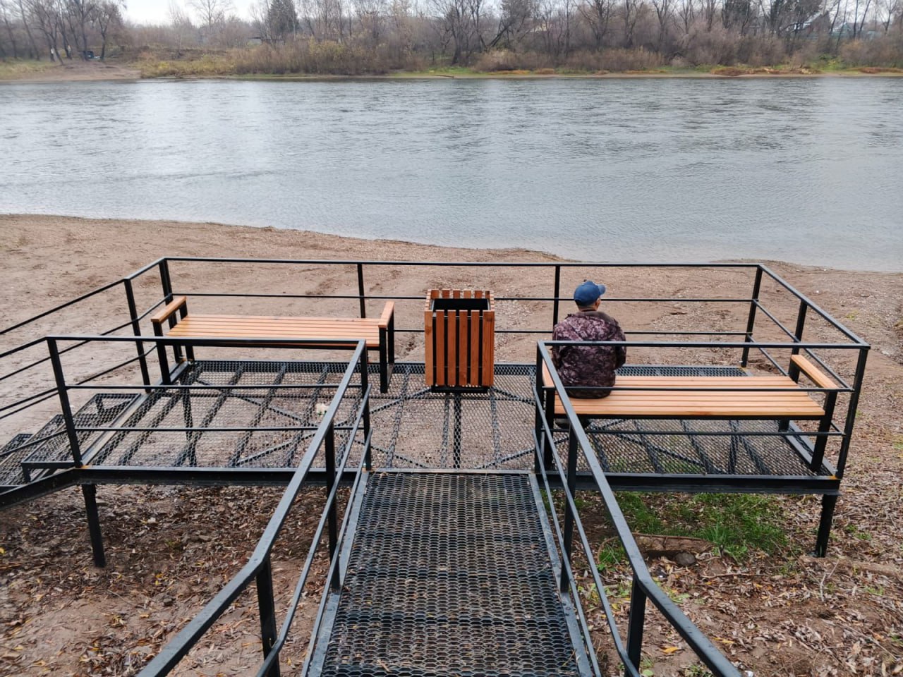 На Дудкинской переправе на смотровой площадке установили новые скамейки