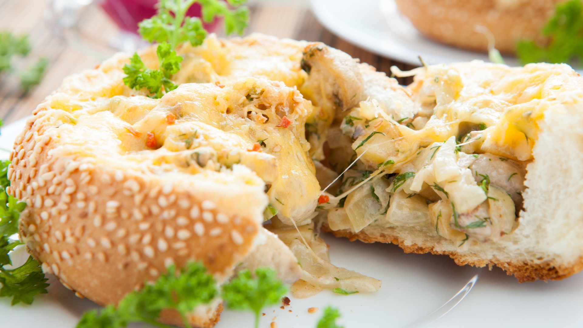 Готовую начинку выложите в подрумянившийся батон, добавьте сверху оставшийся сыр и перед подачей продержите блюдо в духовке еще 10 минут, делится YouTube-канал «Кулинарная гармония». Приятного аппетита!