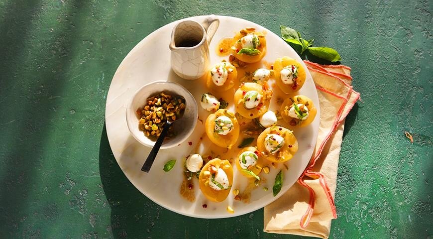 Абрикосы с моцареллой, фисташками и бальзамическим уксусом – это оригинальное сочетание, которое идеально подходит для легкого перекуса или как закуска на дружеской встрече. Сочетание сладкого и соленого в этом блюде завораживает своим вкусом. Ароматная моцарелла, хрустящие фисташки и кисло-сладкий бальзамик хорошо подчеркивают сочные абрикосы, создавая уникальное гастрономическое произведение, пишет Дзен-канал "ГАСТРОНОМ.РУ".