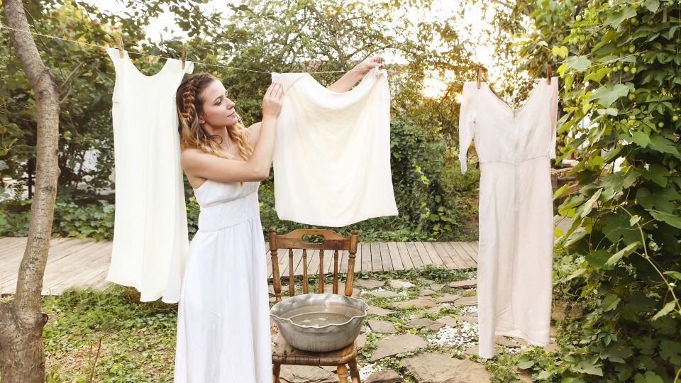 Пока ткань еще сырая, развесьте ее на сушилку в расправленном виде. Старайтесь сделать так, чтобы складок и заломов не было совсем, советуют на портале Setafi. Если они все же появились, а утюжить не хочется, повесьте одежду в ванной комнате, как только кто-то там помоется. Благодаря пару заломы разгладятся.
