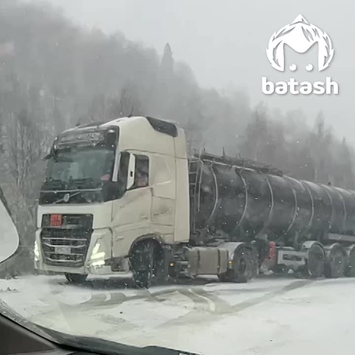 На дороге сейчас такая обстановка — сильный гололёд и снегопад. Местные говорят, что уборочных машин ещё не видели.