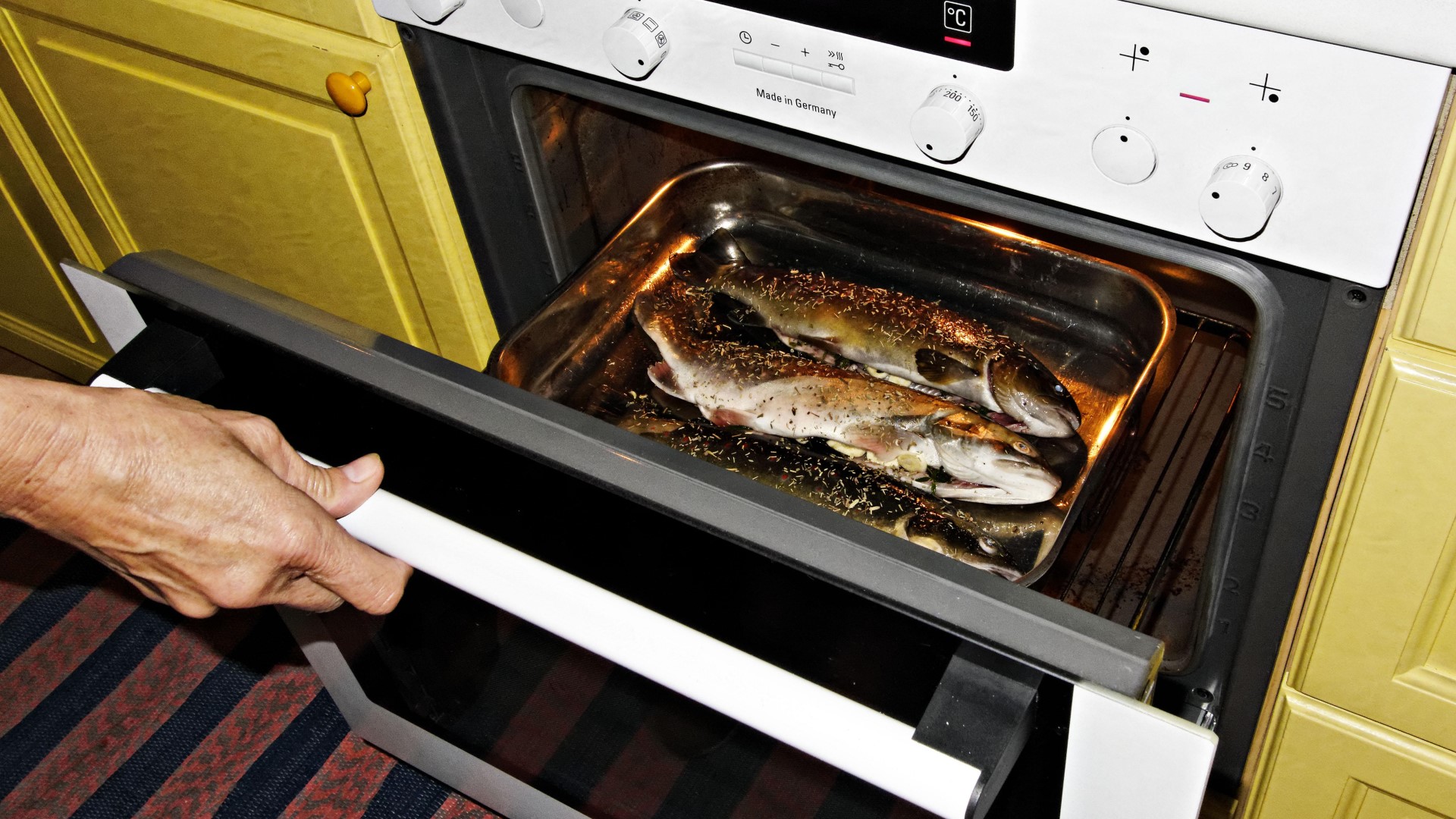 После приготовления рыбы в духовке долго остается специфический аромат. Чтобы от него избавиться, порой нужно часами проветривать технику.