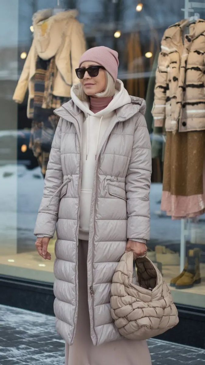 Стеганые пальто в спортивном стиле становятся настоящим маст-хэвом этой зимы. Они не только защищают от холода, но и добавляют изюминку в повседневный образ. Пальто светлого бежевого оттенка отлично смотрится в комбо с мягкими свитерами и удобными джинсами, создавая непринужденный и стильный вид.