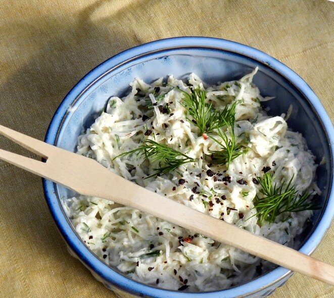 - Заправка должна состоять из йогурта, так как сметана здесь не совсем уместна.