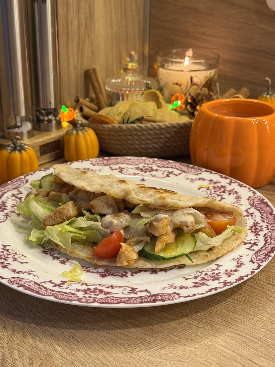 Лепёшка роти с сочной курицей, свежими овощами и пикантным сливочно-кунжутным соусом — это идеальный вариант для вкусного и сытного завтрака. Не спешите, насладитесь этим рецептом, который станет настоящим кулинарным праздником!