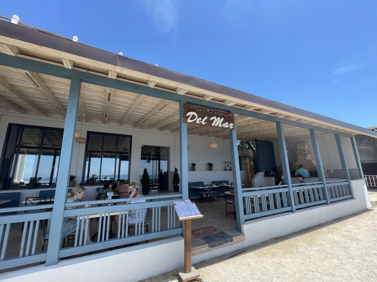Кафе 'Дель Мар', помимо своих недорогих цен, отличается атмосферой и внешним видом, которые сразу выделяют его среди стандартных кафе и забегаловок на набережной. Интерьер заведения оформлен в легком пляжном стиле с преобладанием белого камня и лазурной плитки. Это создает уютную и расслабляющую атмосферу во время трапезы с видом на море.