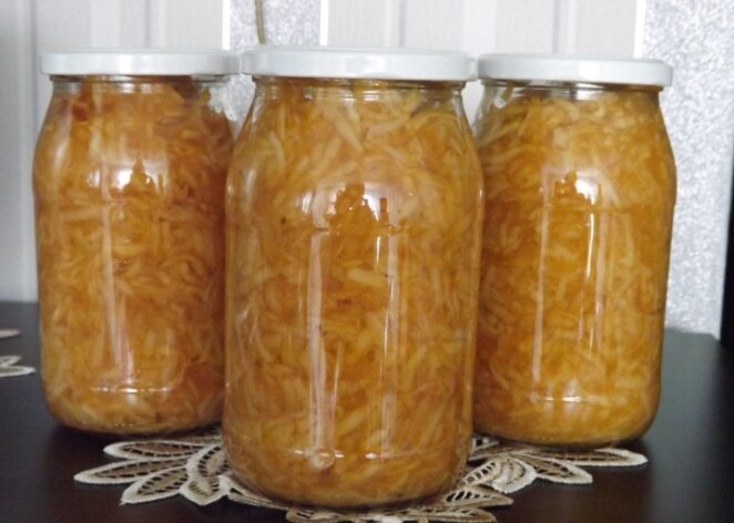- Яблочная стружка с сахаром: Для данного рецепта потребуется примерно 3-4 кг яблок и 300-400 г сахара. Яблоки следует очистить, удалить семена и нарезать на крупной терке. После этого к стружке добавляют сахар, дают настояться 15-20 минут, помещают в стерилизованные банки и стерилизуют в зависимости от размера банок.