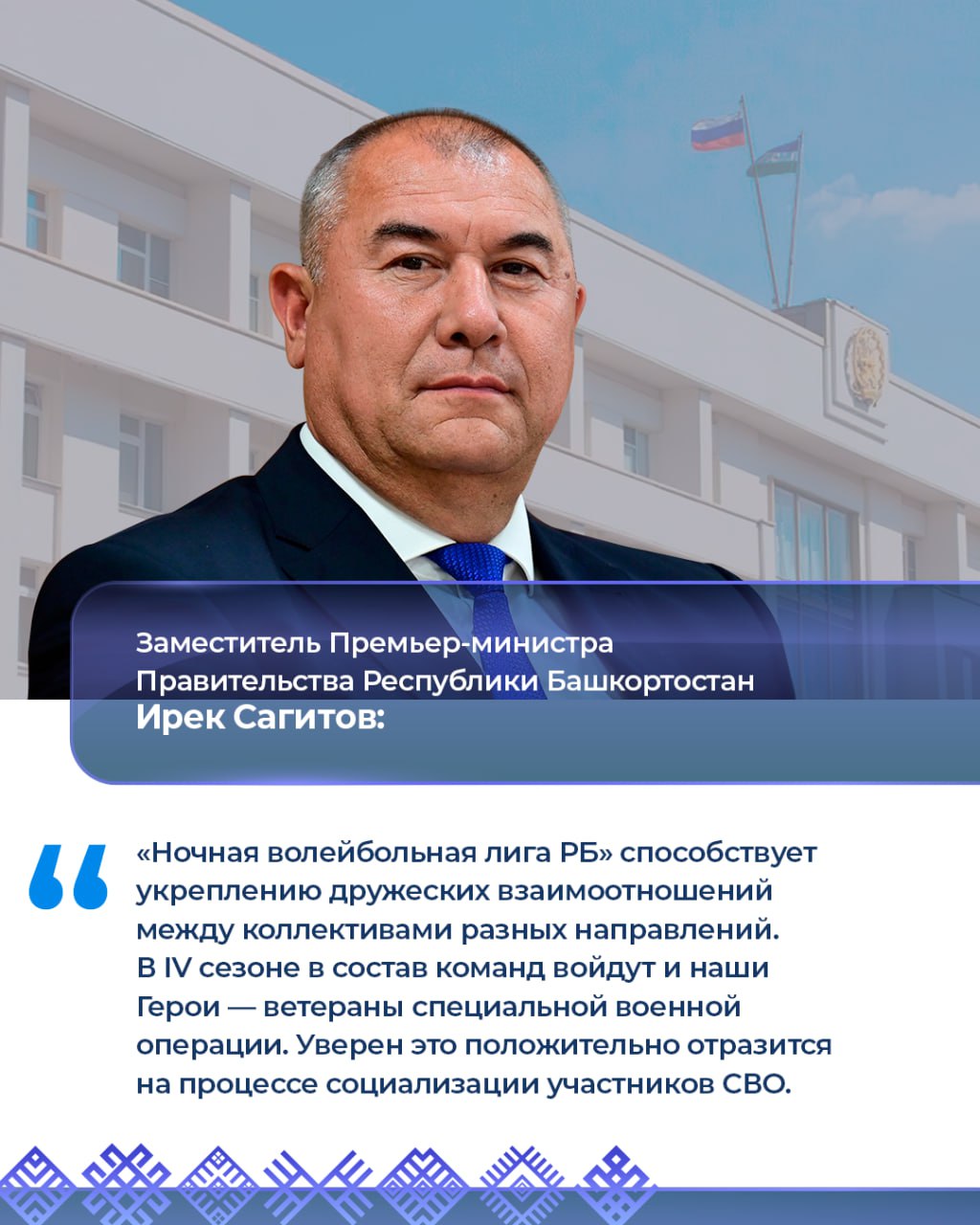 Заместитель Премьер-министра Правительства Республики Башкортостан Ирек Сагитов в торжественной обстановке открыл IV сезон республиканских соревнований «Ночной волейбольной лиги».