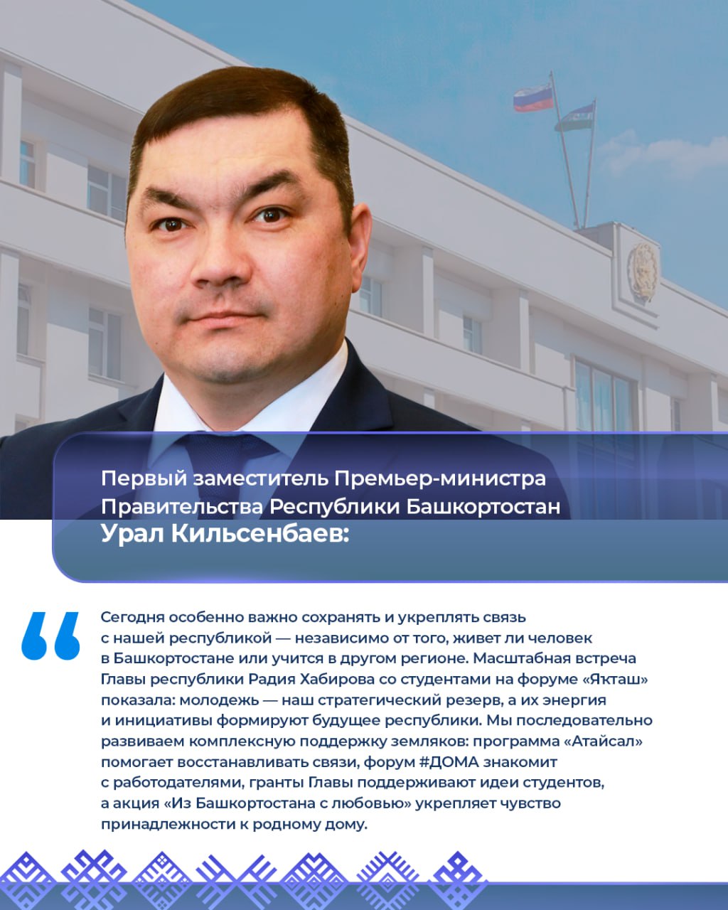 Первый заместитель Премьер-министра Правительства Республики Башкортостан Урал Кильсенбаев отметил важность системной работы республики с земляками и молодежью, где бы они ни находились.