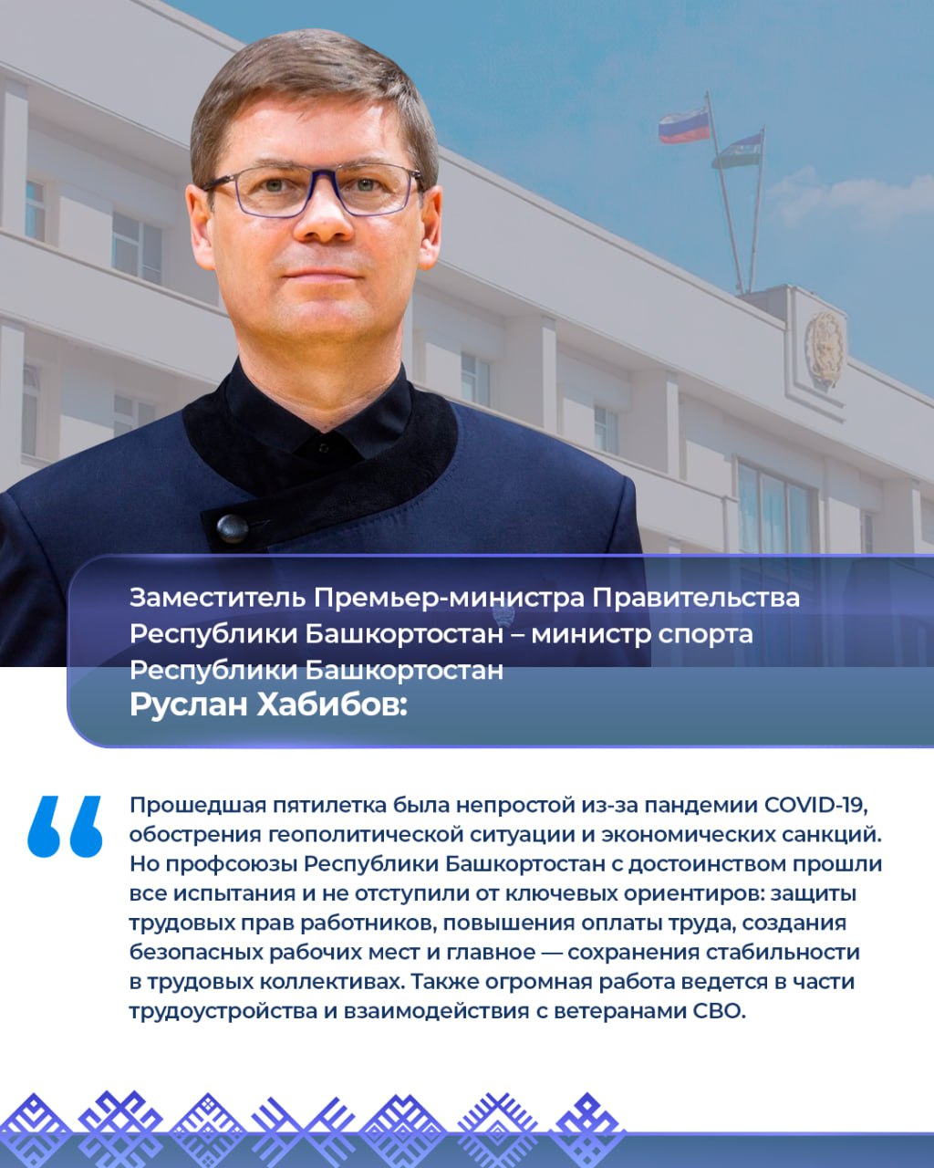 Заместитель Премьер-министра Правительства Республики Башкортостан – министр спорта Республики Башкортостан Руслан Хабибов принял участие в ХХIХ отчетно-выборной Конференции Республиканского союза «Федерация профсоюзов Республики Башкортостан».