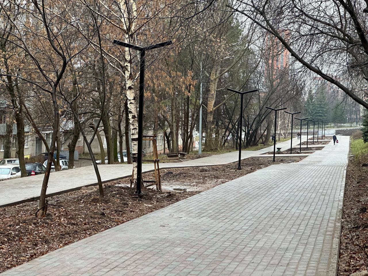 Работы уже завершены: уложен асфальт, проложена брусчатка, установлены бордюры, смонтированы 11 светильников и уложены кабели. Осталось только поставить малые архитектурные формы.