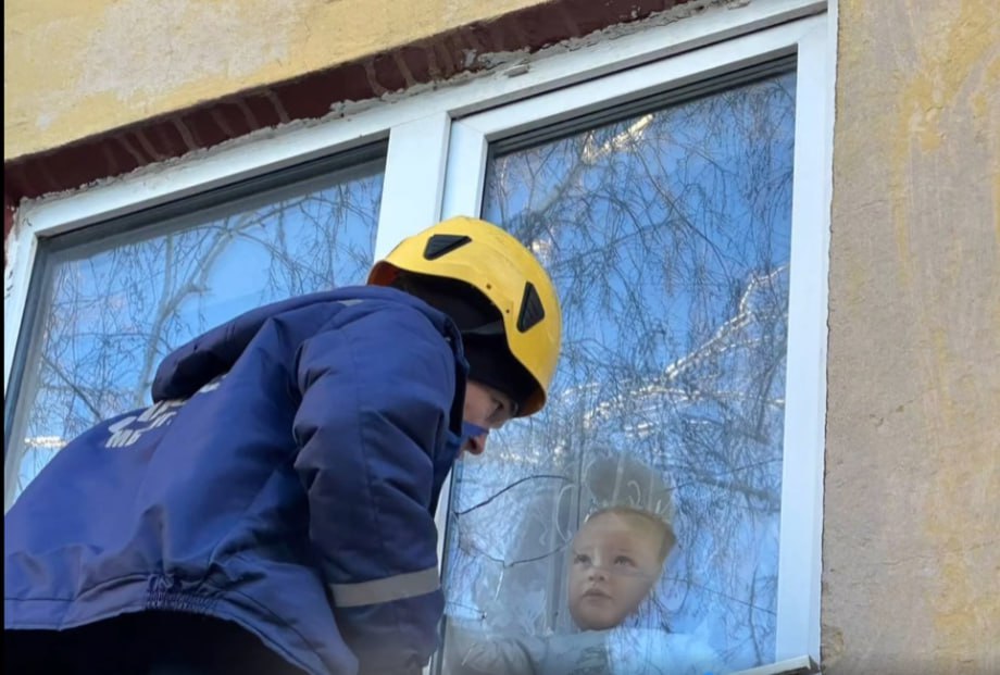 Ребёнок оказался на подоконнике. Спасатель взобрался по лестнице к окну, чтобы обезопасить ее, в то время как его коллеги вскрыли входную дверь. Малышка не пострадала.
