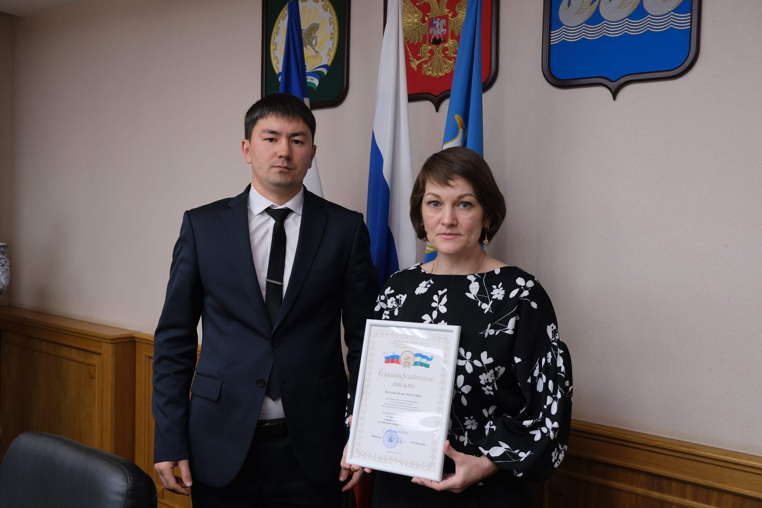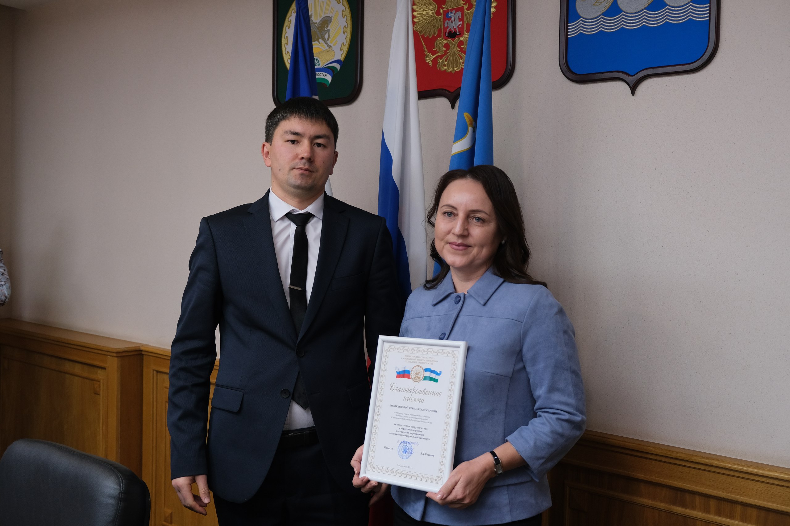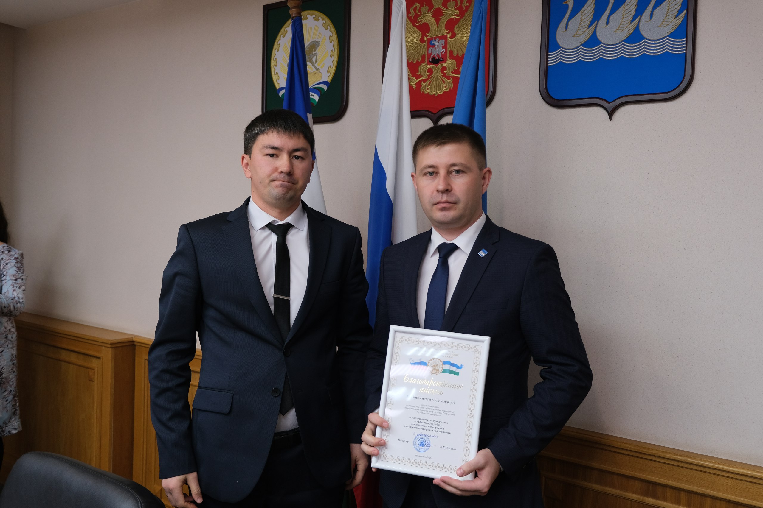 В завершение встречи Тимур Басирович вручил работникам администраций, внёсших значительный вклад в работу по противодействию нелегальной занятости, благодарственные письма Министерства семьи, труда и социальной защиты населения Республики Башкортостан.