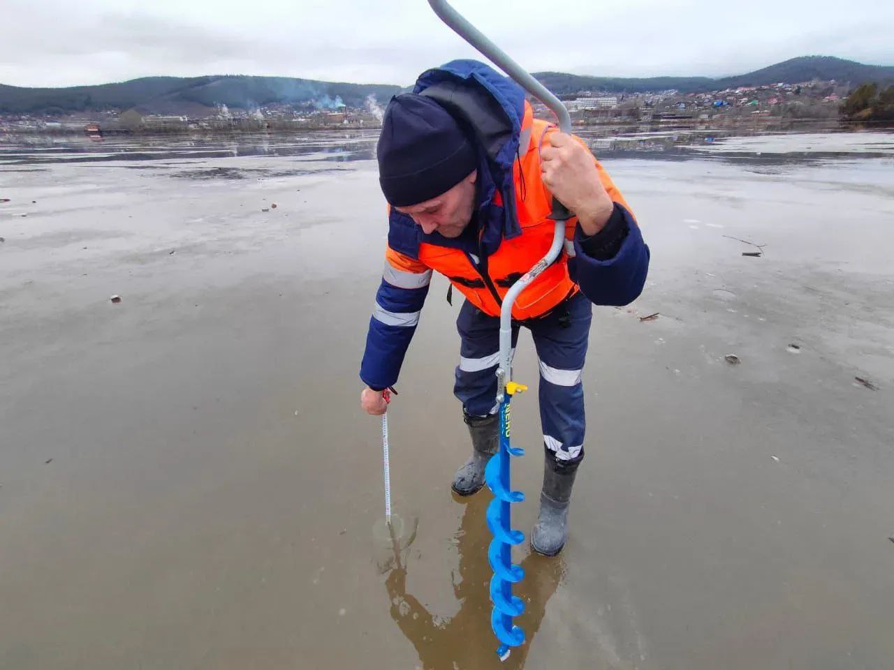 При нынешней температуре воздуха лёд ещё недостаточно прочен и не способен выдержать вес человека. Безопасной считается толщина льда от 10 см и более.