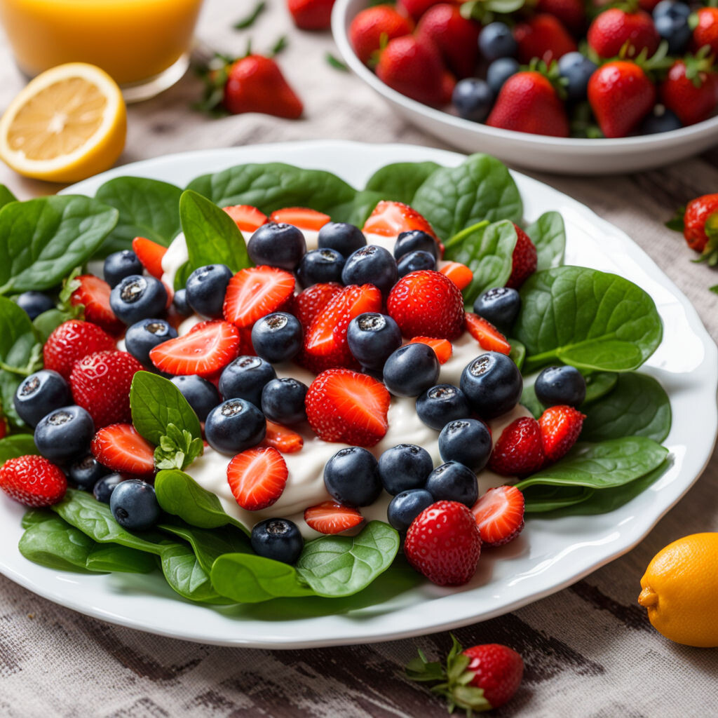 Смешав ягоды с медом и лимонным соком, можно получить потрясающую заправку. Разложите шпинат на тарелке и добавьте ягодную смесь сверху. Заправка из меда и йогурта придаст этому салату легкость и свежесть.