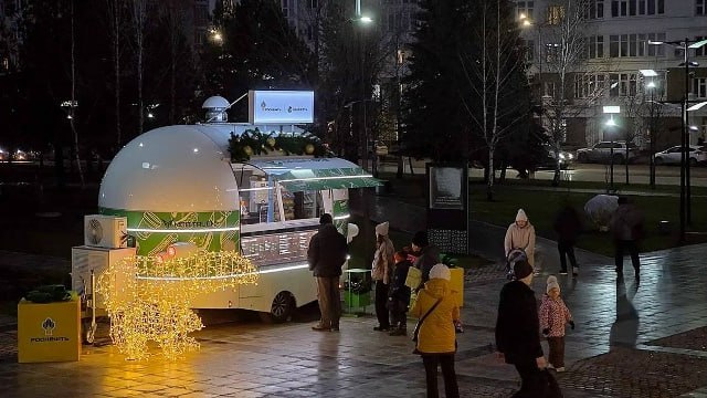 Для создания уютной атмосферы здесь же разместили стилизованный фуд-трак. Здесь можно купить горячую выпечку и напитки.