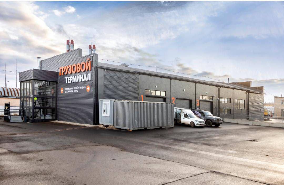 Терминал расположен рядом с КПП-1, на границе контролируемой зоны. В нем есть всё для работы с грузами: парковка для клиентов, места для оформления документов и специальные площадки для приёма, проверки и отправки почты и грузов.
