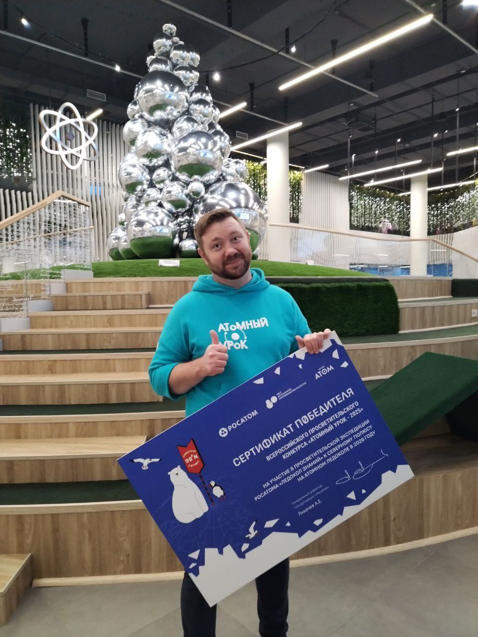 Абсолютным победителем конкурса «Атомный урок - 2025» стал Инчин Артем Геннадьевич, заместитель директора школы №11, учитель истории, обществознания, экономики и географии. Он представил метапредметный урок по 6 предметам, сочетающий получение знаний и формирующий патриотизм у школьников.