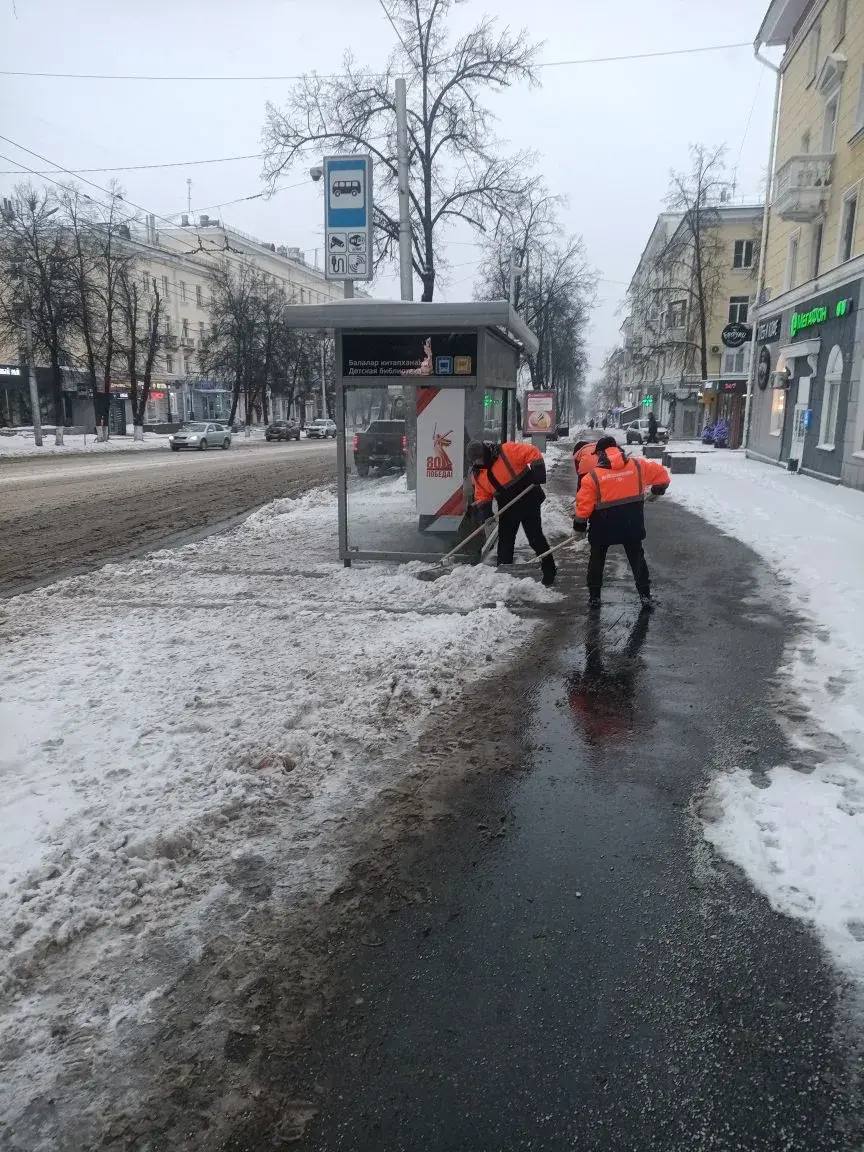 Коммунальные службы работают по всему городу, чтобы очистить улицы.