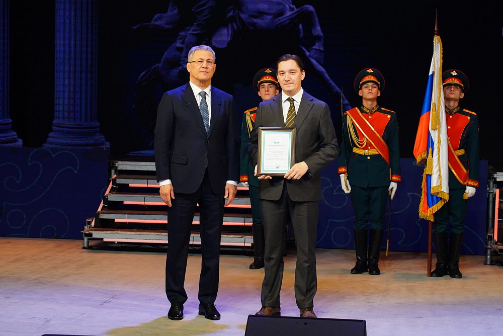 В рамках торжественной части руководитель региона вручил государственные награды муниципалитетам и организациям, которые внесли наибольший вклад в поддержку бойцов СВО и их семей. Стерлитамак был отмечен благодарностью Главы Республики Башкортостан за организацию комплексной работы в этом направлении. Награду получил глава администрации города Эмиль Шаймарданов.