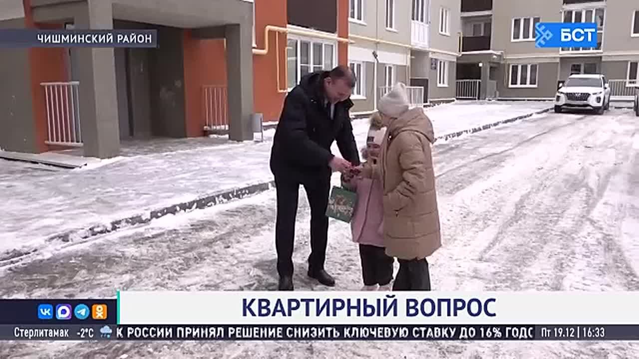 Лучший подарок накануне Нового года. 14 новосёлам в Чишмах вручили ключи от новых квартир. Дом по улице Центральной, 26 был построен в рамках Республиканской программы переселения из аварийного жилья.