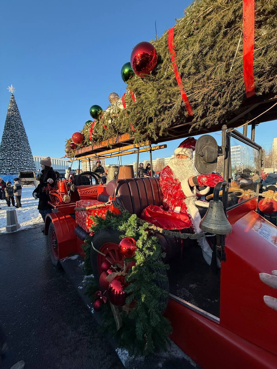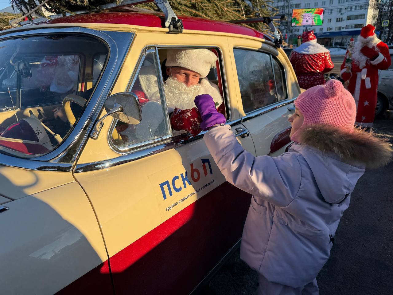 В сопровождении Дедов Морозов и Снегурочек проехали машины, украшенные праздничной атрибутикой, создавая особую новогоднюю атмосферу. Об этом сообщил Ратмир Мавлиев.