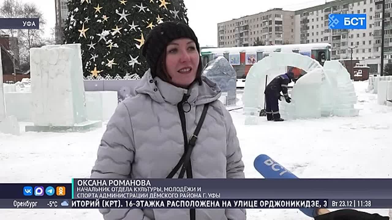 В Дёмском районе Уфы ведутся работы по созданию ледового городка. Планируется установка пяти ледяных фигур, концепция которых – эпос «Урал-батыр».