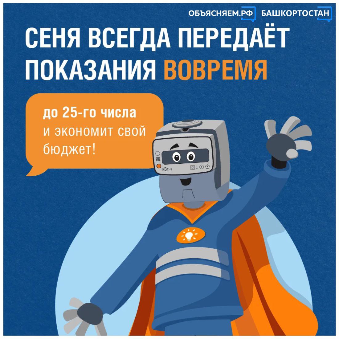 Знакомьтесь — Счётчик Сеня! Он знает главный секрет экономии: передавайте показания счётчиков до25го числа каждого месяца.