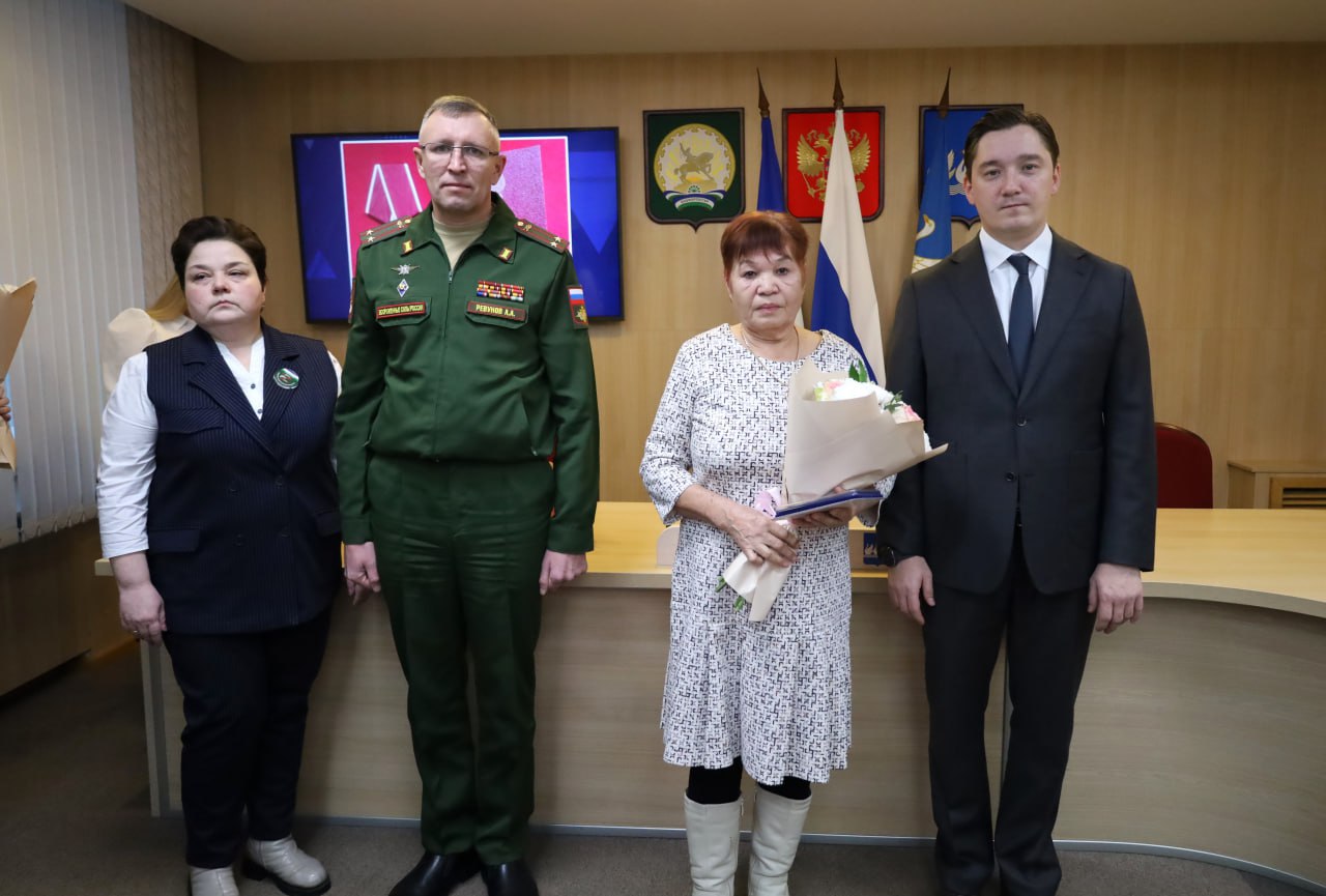 В администрации Стерлитамака вручили государственные награды семьям военнослужащих, погибших в ходе специальной военной операции. Ордена и медали передали глава администрации города Эмиль Шаймарданов, военный комиссар Стерлитамака и Стерлитамакского района Анатолий Ревунов и руководитель Комитета семей воинов Отечества г. Стерлитамака Янина Волочаева.