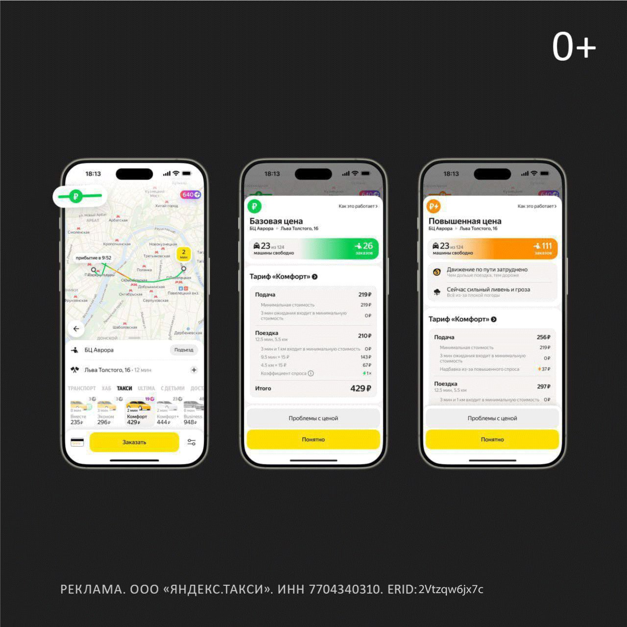 Сервис сравнивает число пассажиров и машин в радиусе 2–3 км. Данные обновляются каждую минуту. Плюс показывают, что ещё влияет на стоимость: пробки, погоду и прочие радости города. Можно прикинуть — ехать сейчас, переждать или свернуть к автобусу. Достаточно выбрать маршрут и тариф, а потом нажать на цветной значок рубля в левом верхнем углу.