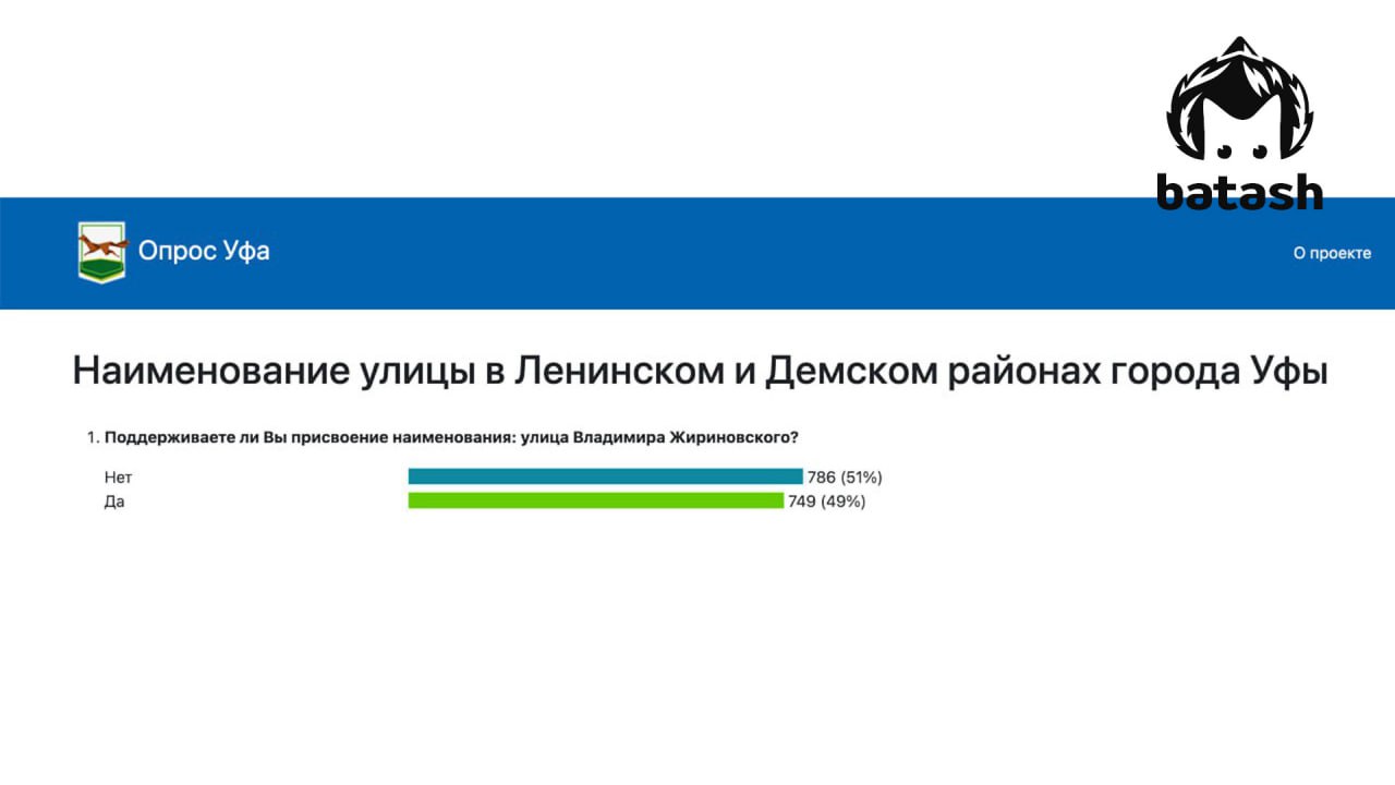 Улицы Жириновского в Уфе не будет — до победы в голосовании не хватило всего 38 голосов.