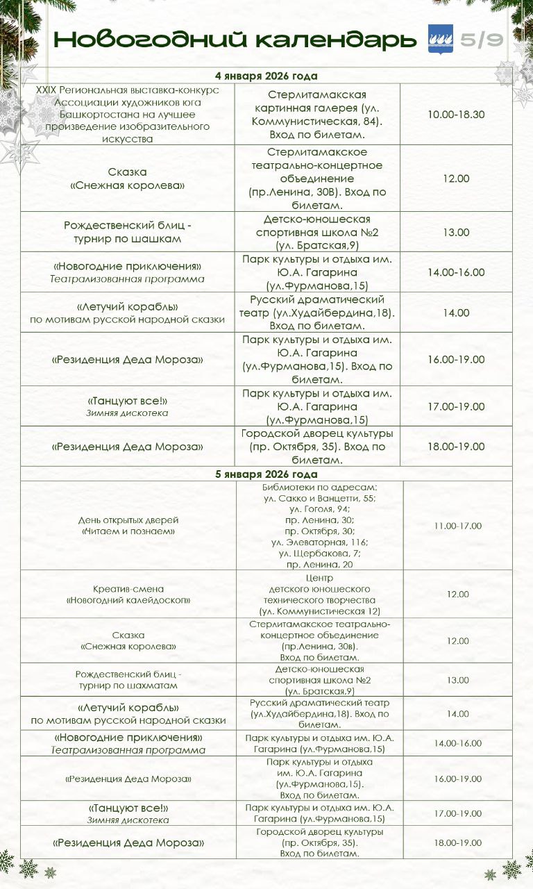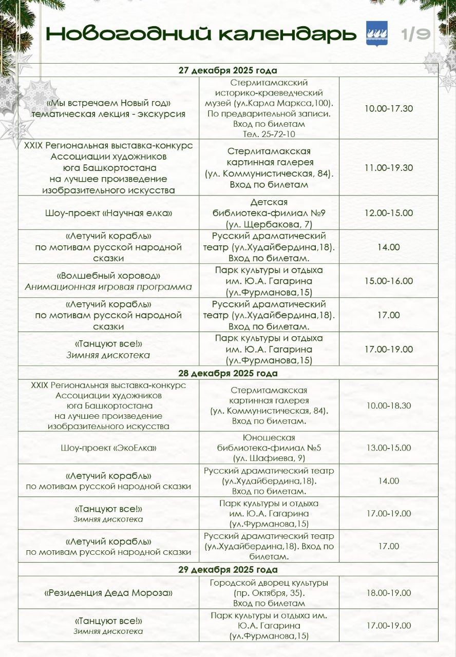 В преддверии Нового года и в новогодние каникулы в Стерлитамаке пройдут тематические мероприятия.