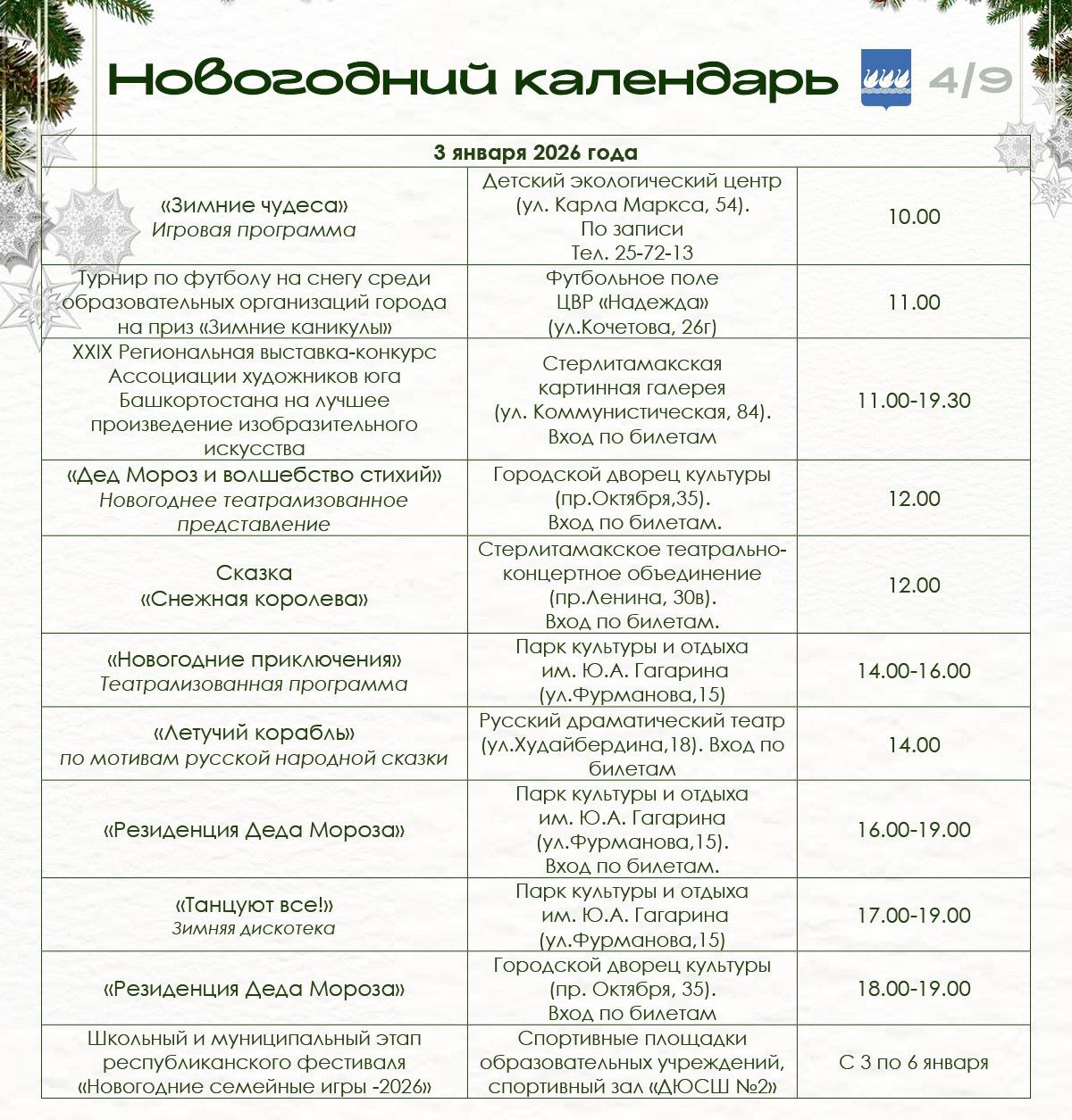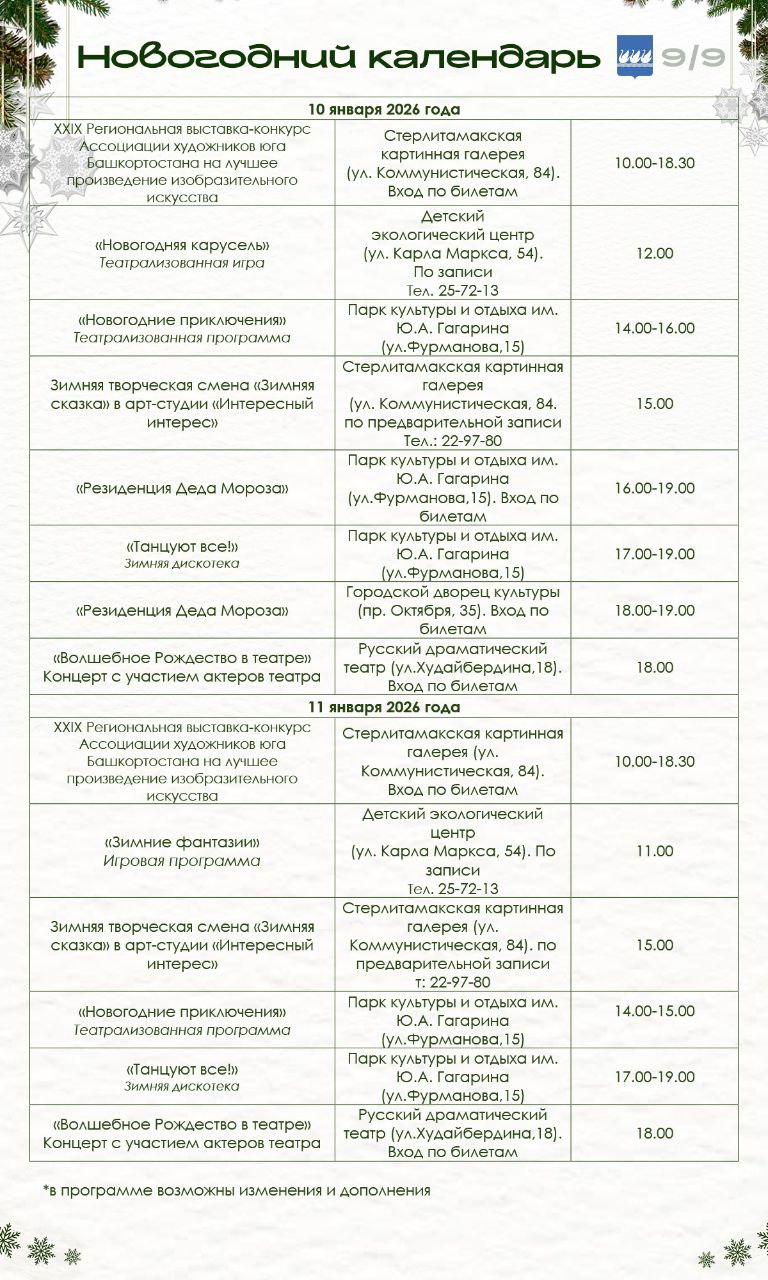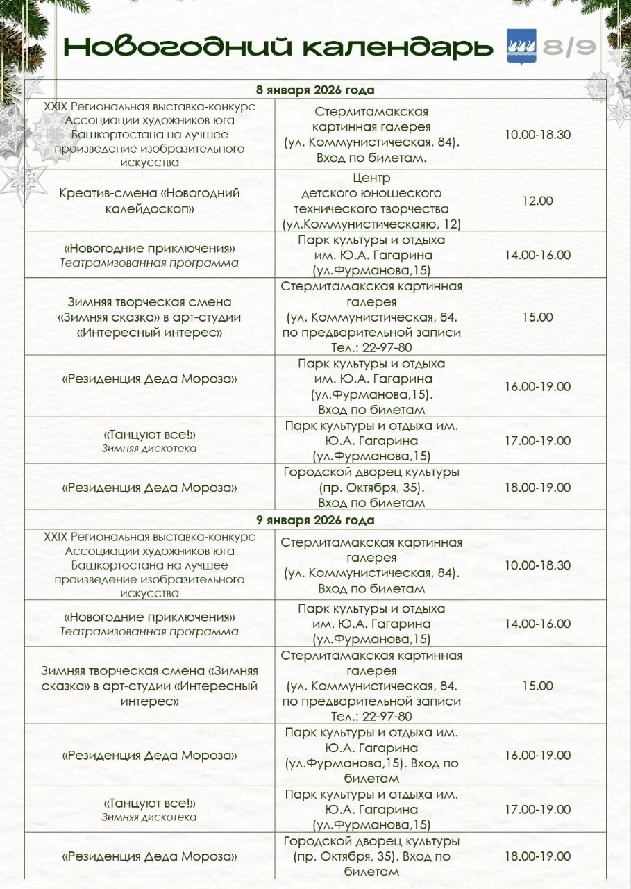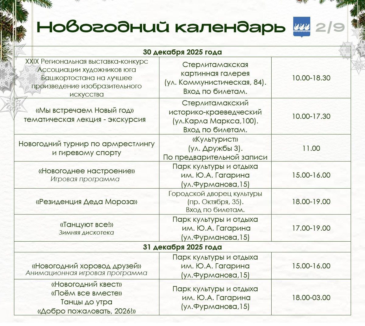 Сохраняйте карточки, делитесь ими. Окунитесь в атмосферу праздника. И не забудьте отмечать виды города и писать о мероприятиях, которые вы посетили, с хештегом #НовогоднийСтерлитамак2026.