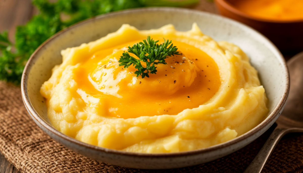 Этап 2: Основное пюре. Разомните картофель до состояния однородного пюре, предпочтительно с использованием пресса или через сито — не стоит использовать блендер, чтобы избежать клейкой текстуры. В отдельной кастрюле подогрейте сливки и молоко с добавлением масла, можно также использовать раздавленный чеснок для дополнительного аромата, но затем его следует удалить. Получившуюся смесь влейте в картофельное пюре, тщательно перемешивая до получения кремовой консистенции. Посолите по вкусу.