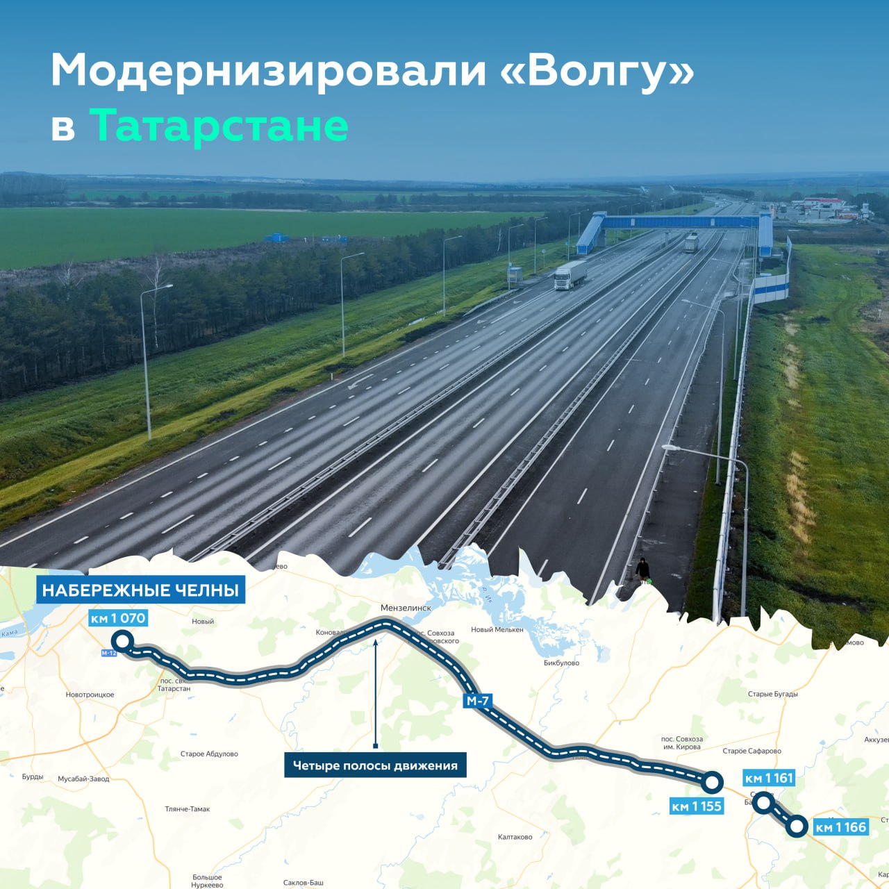 Сейчас всё основное направление «Волги» в границах Татарстана — четырёх- и шестиполосное.
